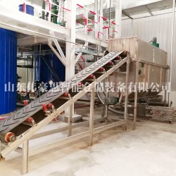 自動拆包機主要由皮帶進料機、破包裝置、篩分裝置、中間支架、收塵裝置、螺旋輸送機、控制箱七部分組成,袋裝物料由皮帶機輸送至破包機,經旋轉刀破包后進入主體內,通過主體內的振動篩將水泥分離出來,并將袋子推到出袋口,由收袋機進行壓縮收集;分離出來的物料落入螺旋內,由螺旋將物料推至供料器,供料器將物料均勻的輸送到加速室內,物料通過管鏈輸送機輸送到儲料倉內。