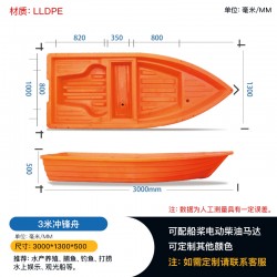 塑料漁船特性:抗沖擊性強,穩定性。質量輕,浮力大,速度快。材質耐酸堿,抗老化,不易損壞。
