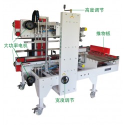 TW-09GL性能特點:換帶容易,維修保養容易,水平封箱方式,封箱整齊美觀單向側面移動,動作順暢無噪音,寬度變更采用自動升降設計 |