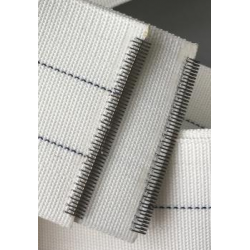 全棉帆布輸送帶是糧機行業或者食品行業專用的,本產品由全棉制作,不含其他纖維,抗靜電,無毒。 本產品用于輸送糧食例如饅頭 ;餅干 ;水果 ;蘋果 ;等等之類的,**衛生部門明確要求這樣的輸送需要純棉輸送帶,本公司的純棉輸送帶沒有經過化學加工,采取天然的植物纖維紡紗,編織而成。我公司專業從事工業輸送帶的代理和銷售,現有PVC生產行業用的耐高溫木棉輸送帶出售,專業用于融溶狀態的PVC輸送5mm厚,PVC溶化后不容易沾住皮帶,能長時間耐高溫200度,歡迎有需要的朋友來電咨詢 產品使用憂質滌棉、純棉紗經整體編織而成,具有整體性好、堅固耐用、無毒、無味、伸長率低的特點,主要應用于 食品廠制藥廠、糧庫提升蓄電池生產線等專業輸送及面粉廠的高方篩中,管狀帶還可用于服裝布料的熱定型。 產品特點:雙緊邊,高緯密,不易拉長,不易跑偏,布面平整光潔。 主要產品: 一、 ;雙緊邊帆布輸送帶 A. ;各類各型餅干機上專用的成型(沖印,輥印,輥切),輸送,冷卻和余料回頭帆布帶。 B. ;自動蛋卷機成型輸送帆布帶。 C. ;各型米(雪)餅機傳送帆布帶。 D. ;無端環形帆布帶。 主要品種: 一、 ;雙緊邊帆布輸送帶 A. ;單層 ;厚度1.5mm(多用于成型,回料) B. ;雙層-A ;厚度3.0mm(多用于冷輸) C. ;雙層-C ;厚度2.0mm(多用于成型) D. ;無端環形帆布帶 ;根據客戶要求定制