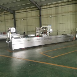 全自動拉伸膜機 牛津腸烤腸螃蟹獅子頭羊肉串封口機采用連續步進的方式,由下卷膜成型,上卷膜作封口。
