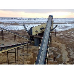 制砂流程為:經過二次中碎后的煤矸石石子由帶式運輸機直接給料至沖擊式制砂機入料口,沖擊式制砂機對其進一步加工處理(制砂+整形),再經由帶式輸送機輸送至振動篩進行二*篩分,篩分出料分為兩個方向,粒徑>5mm的物料返回沖擊式制砂機再次加工,粒徑≤5mm、粒度均勻的煤矸石機制砂經帶式輸送機送至0-5mm成品料倉。如有洗砂需求,可購買洗砂機和細砂回收機。