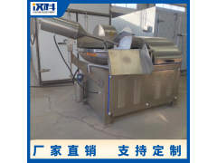 斬拌機刀速、鍋速、斬刀與轉鍋的間隙達到較為合理,使斬切產品細度好、升溫小、斬拌時間短,特別是由于乳化處理,使大豆蛋白類產品的細密度與彈性增強,提高了豆制品乳化效果、彈性及細膩度。采用變頻技術,刀速調整范圍大,刀速、鍋速、斬刀與斬鍋的間隙、斬刀材質和刀的硬度設計較為合理。